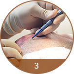 Tiến hành cấy tóc vào vùng cần cấy râu bằng cách sử dụng bút cấy chuyên dụng